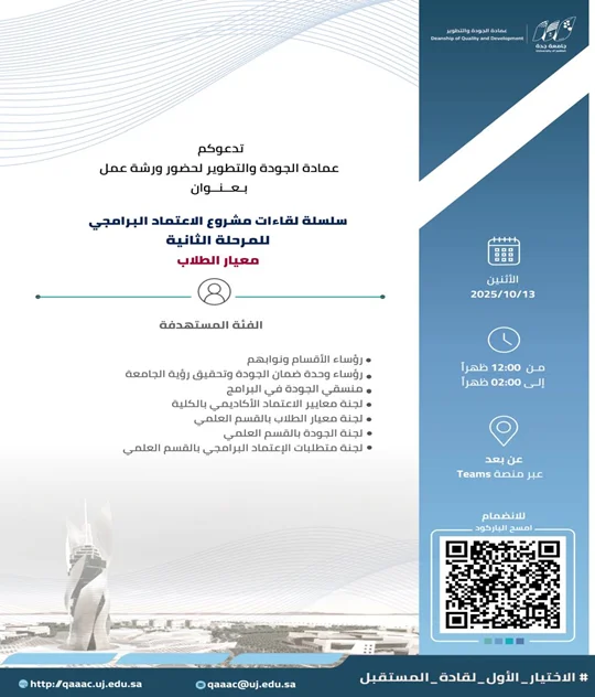 عمادة الجودة والتطوير هي أحدث عمادات جامعة جدة، تم انشاءها في ٣-١٠-٢٠٢٣م بضم ثلاث جهات مركزية وحيوية بالجامعة وهي إدارة ضمان الجودة والاعتماد الأكاديمي وإدارة المناهج والبرامج الأكاديمية ومكتب التحول المؤسسي لتكون العمادة مسؤولة عن جميع المهام والأنشطة المتعلقة بضمان الجودة الإدارية والأكاديمية، وباستحداث وتطوير البرامج الأكاديمية، وبعمليات التخطيط الاستراتيجي، تم هيكلة هذه المهام على ثلاث وكالات بالإضافة إلى تبعية مكتب التحول المؤسسي ككياناً مستقلاً، تساهم العمادة في تحسين أداء قطاعات الجامعة وجهاتها، وفي بناء ثقة أصحاب المصلحة، وفي تعزيز التنافسية، وفي التزام القيادة والكوادر بممارسة الجودة والتحسين المستمر في جميع جوانب العمل الأكاديمي والإداري، كما تساهم في إدارة عملية التحول المؤسسي للجامعة وتحقيق المستهدفات الاستراتيجية والوطنية. هدف هذه الجهود هو تمكين الجامعة من القدرة على المنافسة مع المؤسسات التعليمية المناظرة، وتحقيق معايير الاعتمادات المؤسسية والبرامجية واعتمادات الجودة الإدارية الشاملة.